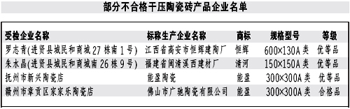 本報訊記者龔漢斌報道:近日,江西省質(zhì)監(jiān)局公布了近期對干壓陶瓷磚產(chǎn)品進行省級產(chǎn)品質(zhì)量監(jiān)督抽查的結(jié)果。質(zhì)監(jiān)部門共抽查了51家生產(chǎn)企業(yè)生產(chǎn)的52批次產(chǎn)品,抽樣合格率90.4%。抽查結(jié)果表明,本次抽查的陶瓷磚其放射性核素限量指標均達到了標準規(guī)定的要求;但仍有部分產(chǎn)品存在一些問題。 本次抽查的5批次不合格產(chǎn)品中,有1批次產(chǎn)品的破壞強度達不到標準規(guī)定要求,兩批次產(chǎn)品的斷裂模數(shù)指標達不到標準規(guī)定要求。強度性能指標不達標易造成產(chǎn)品達不到應有的承重能力,在使用中產(chǎn)生開裂、破碎或表面缺陷等現(xiàn)象,影響產(chǎn)品的使用壽命和使用性能。有4批次產(chǎn)品的吸水率達不到標準規(guī)定要求。吸水率不達標,將影響消費者的正常使用。 對本次監(jiān)督抽查不合格的產(chǎn)品,省質(zhì)監(jiān)局將依法嚴肅處理。